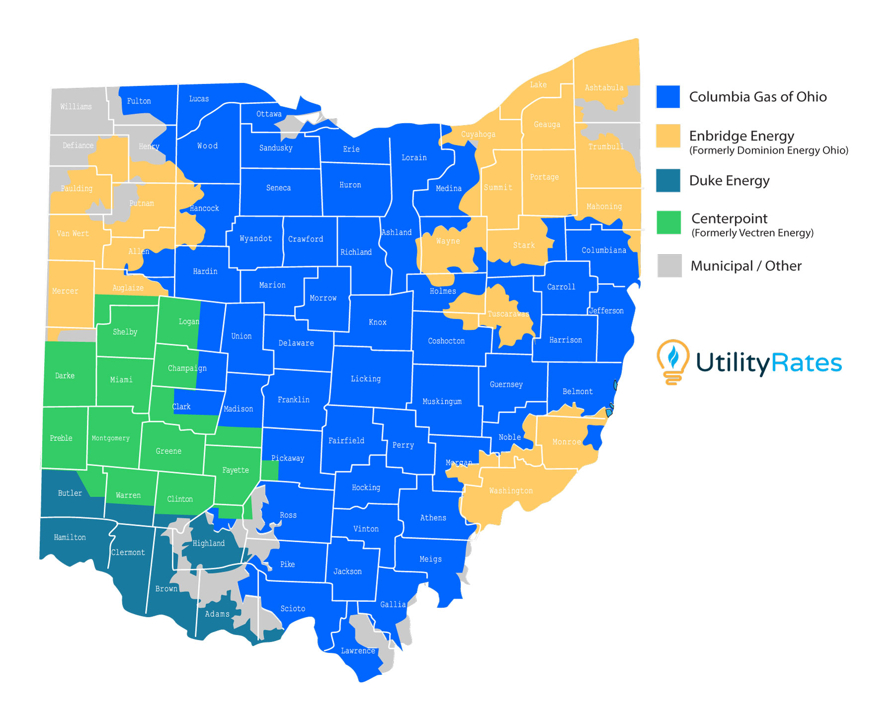 Ohio has four major natural gas utilities. They are responsible for the pipes, meters, distribution and billing of natural gas service to your home and businesses